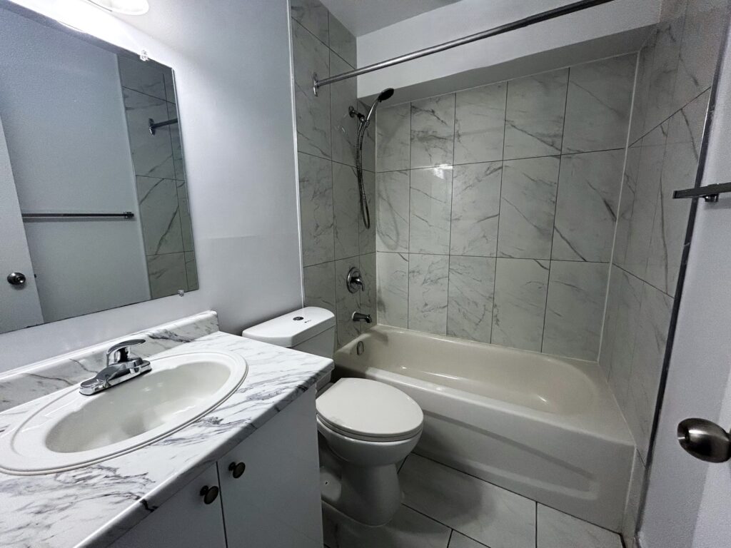 - Eat-in kitchen with additional storage closet and a very long living room / dining room